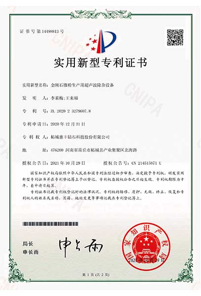 2021年,被河南省科技廳認定為河南省瞪羚企業。金剛石微納粉體河南省工程實驗室、河南省亞微米超硬材料粉體工程技術研究中心建設依托單位、設立了河南省微納米金剛石粉體材料院士工作站及河南省博士后研發基地。